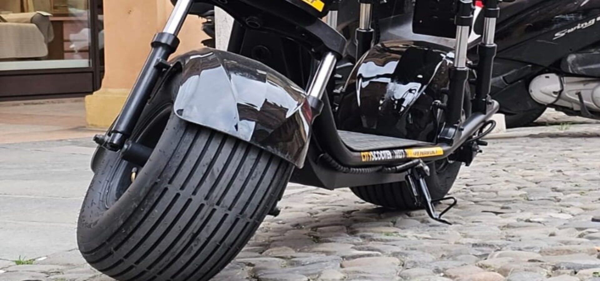 Your City Coco electric scooter, approved for two riders, safe, silent and ready for urban mobility.